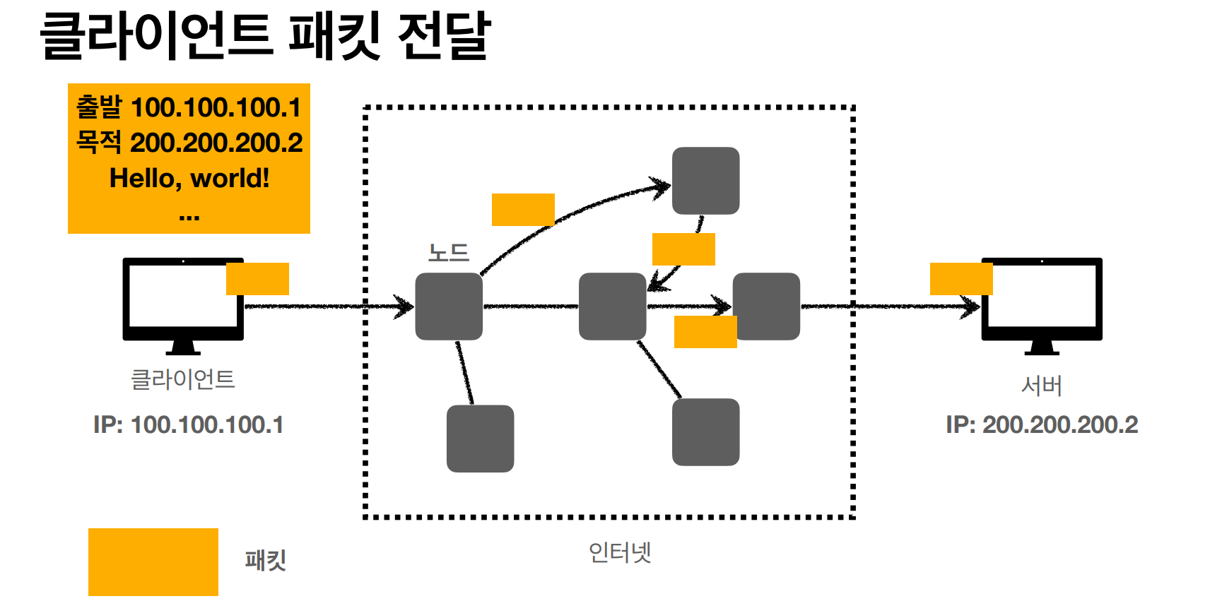 출발지 IP 주소와 목적지 IP 주소를 넣은 패킷을 서버에게 전달한다.